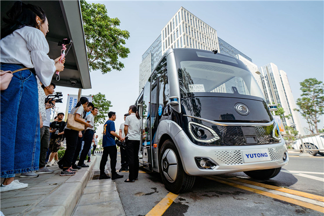2019年5月17日,宇通L4级自动驾驶巴士“小宇”在智慧岛开放道路成功试运行,同期发布“车-路-云-网-法”五位一体的5G智能公交系统解决方案。
