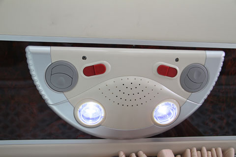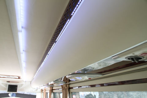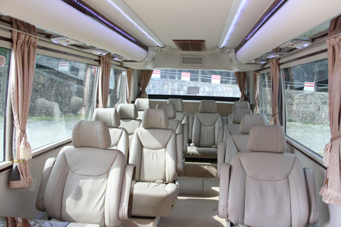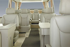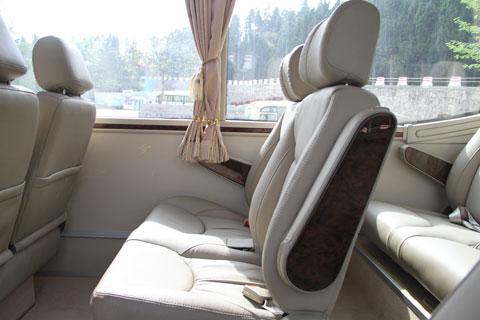 宽大的车身内,安置了16个全真皮VIP座椅和全自动的按摩座椅。 配备了办公桌、视频演示、无线上网、阅读灯等商务办公设备。 车上办公桌、电冰箱、雨伞架、电源、阅读灯等设施一应俱全,安凯独有的新风换气系统,可保持车内空气的时刻清新。 既充分满足了商务人士对高端、舒适等多方面的诉求,又完全具备高度商务旅行客车所有功能。