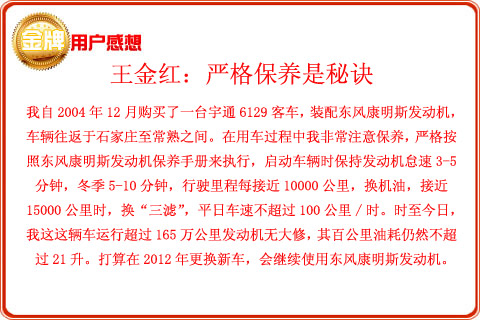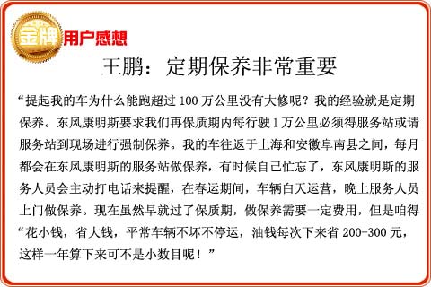 C:走合行驶里程达到1500~2500公里或20~50小时,凭东风康明斯发动机有限公司《质量保证手册》、购车发票以及发动机(或整车)合格证到东风康明斯发动机有限公司所属或委托服务站进行新机检查保养,这种检查保养是免费的。