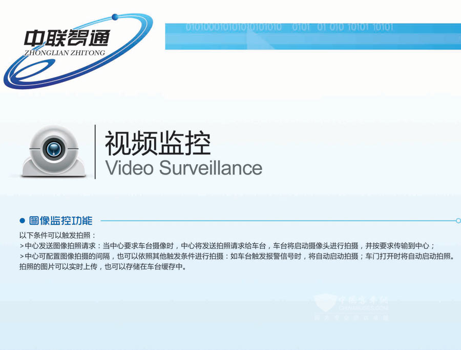 - 中心可配置图像拍摄的间隔,也可以依照其他触发条件进行拍摄:如车台触发报警信号时,将自动启动拍摄;车门打开时将自动启动拍照。