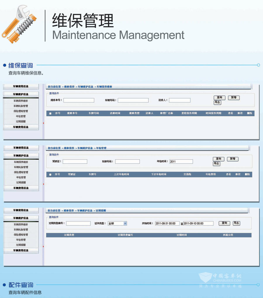 - 车辆信息管理,如:车牌,司机;司机手机等管理信息。
