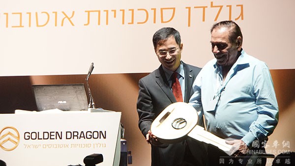 金旅客车常务副总经理彭东庆向Dani先生递交象征合作的友谊车匙