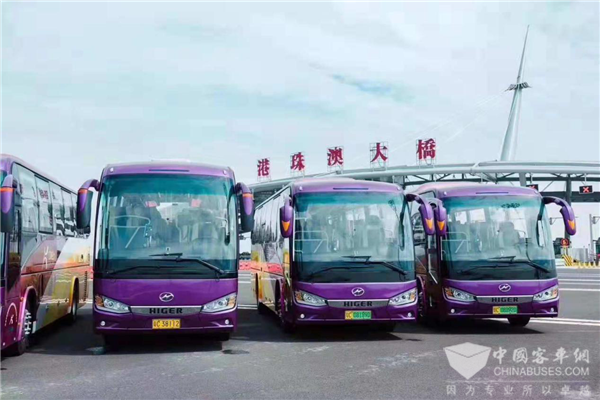 为港珠澳大桥服务的不仅有苏州金龙高端巴士,苏州金龙海格客车多款精品客车也服务于港珠澳大桥接驳通行。珠海万达通港珠澳大桥珠海口岸客运服务有限公司投放全新的海格客车,提供到珠海口岸的接驳服务,服务初期共有6条市内专线:拱北专线、南屏专线、上冲专线、横琴长隆专线、体育中心专线、御温泉专线。
