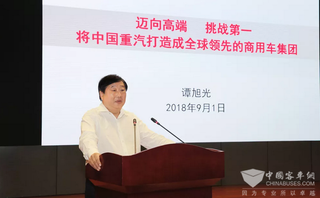 2018年9月1日,中国重型汽车集团有限公司召开领导干部大会,会上宣读了济南市委关于中国重型汽车集团有限公司干部调整的意见。意见表示,8月31日,经中共济南市委常委会研究,谭旭光任中国重型汽车集团有限公司党委书记,董事、董事长,王伯芝不再担任中国重型汽车集团有限公司董事长、董事职务,相关手续按法定程序办理。