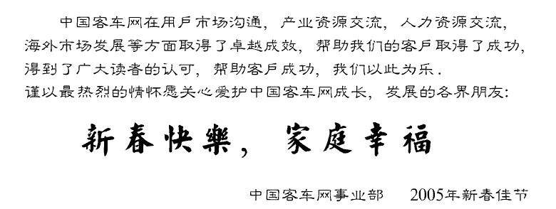 2005, 作为共同发展中国公路客运业的战略合作伙伴,西沃将以“继续关注并满足客户的需求,持续改进、提高客户的满意度”为目标,提供最适合的产品和最细致的服务,力争成为您最佳的商业合作伙伴。