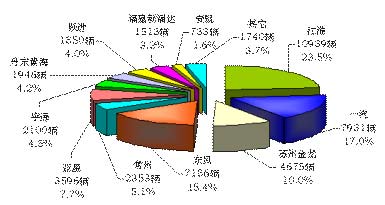从累计市场份额看,江淮居第一,同比下降0.8个百分点, 一汽下降2.0个百分点,东风下降1.5个百分点,苏州金龙下降1.3个百分点,常州下降0.6个百分点,亚星下降0.2个百分点,宇通增长1.0个百分点,安凯增长0.8个百分点。