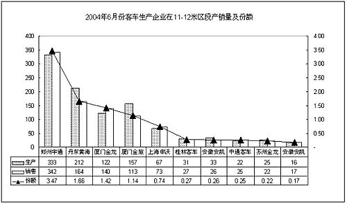2004年6月部分客车分长度11-12米区段产销对比分析