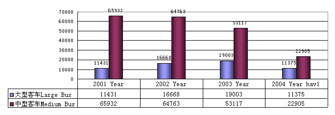 从中汽协(客车部分)结合中通统计来看,由于城市化水平的提高,城市客车连续三年以平均 40%的速度增长,以生产公交车为主的企业业绩增长较快,而以生产底盘、旅游车、团体车等客车厂家出现一定程度的下滑,并纷纷以技术引进、兼并重组等方式开辟城市客车战场,并取得了一定的成效。可以说,城市客车的迅猛发展支撑了大中型客车市场新的繁荣。