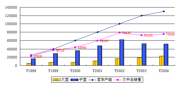 大型客车连续三年以平均 30%的速度增长,大型客车占大中型客车的比例由2001年的14.8%上升为2004年的33.2%,足矣显示客车大型化趋势,这与我国客车发展方向保持一致。由于高速公路的发展,人民生活水平的提高,对客车档次和乘坐舒适性提出更高的要求,加之,大中型客车厂商竞争加剧,促进了客车产品质量和档次的提高。